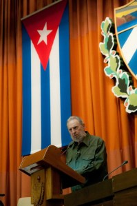 La Habana, agosto 7/2010.Vestido de guerrillero, de completo uniforme verdeolivo, Fidel leyó su “Mensaje a la Asamblea Nacional”. Lo hizo desde un podio pequeño, entre las dos alas de asientos que ocupan los miembros del Consejo de Estado, con su Presidente, Raúl Castro, en su puesto habitual. Más de 600 personas, entre diputados, periodistas e invitados, asistieron a esta sesión extraordinaria del Parlamento y son testigos de un hecho excepcional: el Comandante en Jefe se dirigió desde allí al Presidente Barack Obama, el único que puede evitar una confrontación nuclear de consecuencias devastadoras para la humanidad.