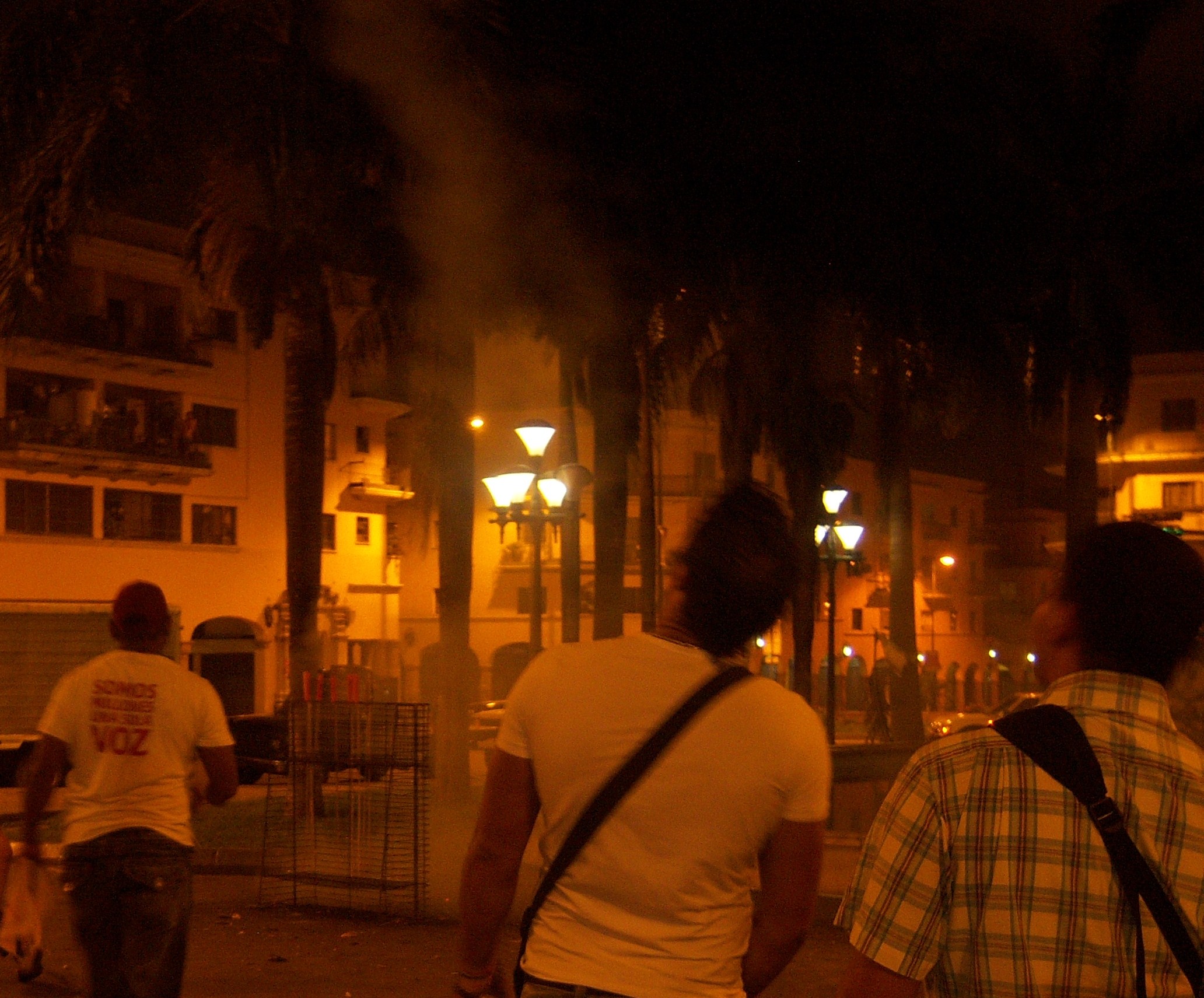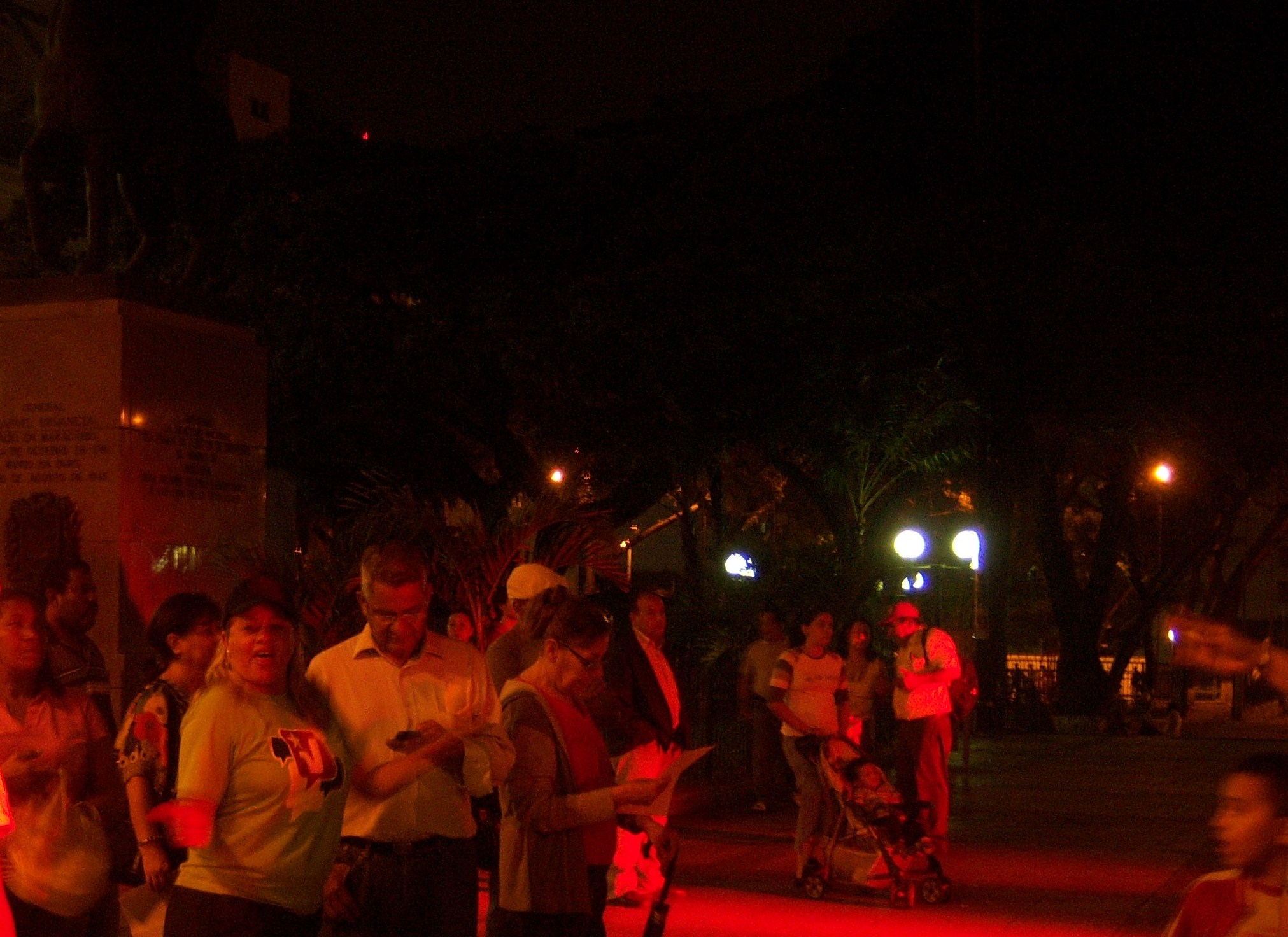 En la Plaza Bolivar nocturana, no hay el gran ajetreo del dia. El caraqueño es abierto al dialogo y la conversacion – por lo que se le hace facil conversar con cualquier persona, te abre las puertas de su corazon generando confianza, tranquilidad y que eres bienvenido.