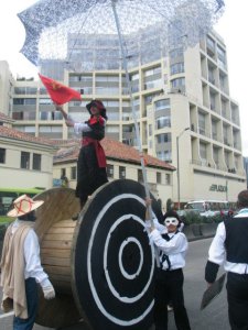 Títulos tan sugerentes como BOLIVAR & ANO “GUERRA DE MIERDA” de la Organización El Contrabajo, EN BUSCA DE UNA DEPENDENCIA – IN del grupo Artilugio, 200 AÑOS Y EL MISMO DISCURSO de la agrupación Arenéus, pusieron a reflexionar al publico capitalino que reconoce en este Desfile  su carácter teatral, colorido y reflexivo.