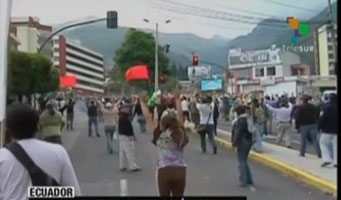 «La Policía dispara de frente a la población (…) Disparan directametne a la población (…) agresión directa al pueblo ecuatoriano que lo único que quiere es defender la democracia «, explicó vía telefónica el corresponsal de teleSUR en la capital, Cristian Salas.