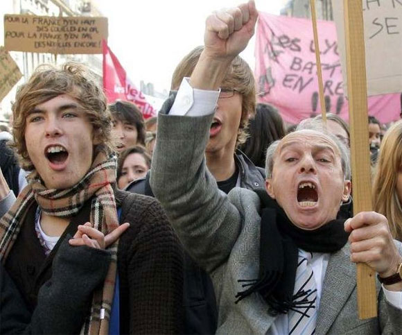 Un grupo de estudiantes levantó barricadas en una escuela secundaria en París y tenían previsto sumarse a las protestas nacionales convocadas para este jueves contra una reforma que Sarkozy considera crucial para su presidencia.