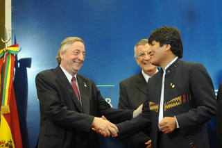 Morales fue uno de los principales impulsores para que Kirchner sea designado Secretario General de Unasur, «por su gran compromiso y fidelidad con la integración sudamericana».