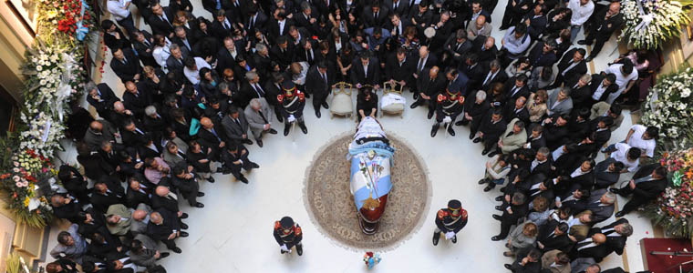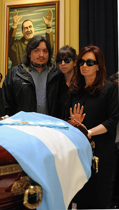 Hacia el mediodía, llegaron los presidentes de Bolivia, Evo Morales; de Ecuador, Rafael Correa; de Uruguay, José Mujica, y de Chile, Sebastián Piñera, para acompañar a la Presidenta, quien se mantiene firme junto al féretro desde hace más de dos horas.