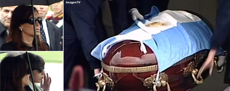 Un doble cordón de granaderos formó fila al paso del féretro y detrás de él, caminaron la presidenta Cristina Fernández de Kirchner y sus hijos, Florencia y Máximo, quienes abordaron el avión que los traslada rumbo a la capital santacruceña.