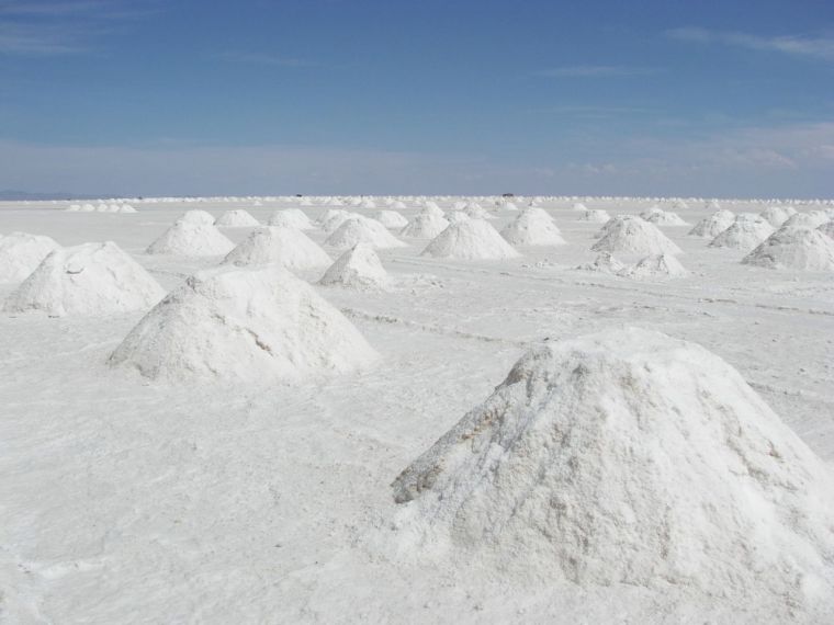 Bolivia posee la primera reserva de litio en las salmueras de Uyuni (oeste andino), estimadas en 100 millones de toneladas métricas.