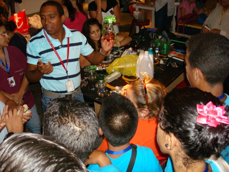 Esta es una herramienta super útil para nosotros por lo menos para mí que tengo que crear objetos durante toda mi carrera es una opción excelente, nos permite muchísimas cosas. La idea de Alejandro que utiliza materiales que ya están hechos y los saca del contexto es algo super últil, una propuesta diferente que podemos llevar a nuestro instituto. INVITADOS PARTICULARESMari Carmen Vega Álvarez, profesora de danza tradicional y cultura en la Unidad Educativa Bolivariana David Pascoe, para niños con discapacidad auditiva. Nos enteramos por un medio escrito y como estamos llevando el arte a las escuelas como una forma y ahora hay un proyecto sobre reciclaje quisimos compartir la experiencia para ver qué otras cosas se pueden hacer con la basura, reciclamos y creamos cosas nuevas. Es una forma de transformar lo ya existente y nos pareció interesante complementar con este aprendizaje lo que se está haciendo en el aula, enriquecerlo con una experiencia significativa.