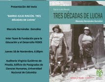 El jueves 18 de noviembre, a partir de las 6:00 pm en el auditorio Virginia Gutiérrez de Pineda, edificio de postgrados de ciencias humanas de la Universidad Nacional de Colombia será presentado al público el libro “Barrio Julio Rincón. Tres décadas de lucha” el cual recoge la historia del barrio Julio Rincón de la Comuna 4 del municipio de Soacha, departamento de Cundinamarca. Es una historia hecha a partir de los relatos contados por sus propios pobladores, de los recuerdos, experiencias y olvidos de los protagonistas del barrio, que con tiempo y paciencia compartieron sus tesoros: la memoria y el cariño que tienen por su barrio.