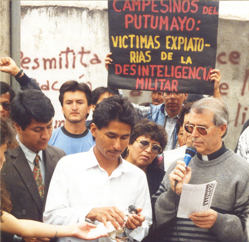 “Nuestra Iglesia, y yo como su obispo, estamos dispuestos a poner las manos en el fuego para afirmar que los campesinos detenidos no son culpables de la muerte de los policías y militares en el Putumayo”, dijo Monseñor Gonzalo López al iniciar una reunión, a finales de diciembre de 1993, en el último piso del edificio del Banco Internacional, en la Patria y Amazonas (Quito), en donde, en ese entonces, funcionaba el Consejo Latinoamericano de Iglesias (CLAI), que agrupaba a varias iglesias evangélicas.