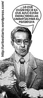 Pero Uribe, no contento con la guerra contra la guerrilla y contra los periodistas agregó, por si acaso había algún comunicador que no entendía su acento paisa (de Medellín): “Que no suenen los terroristas con las tomas de poder que anuncian en las entrevistas, en las cuales, en abuso de la libertad de prensa” (CNE el 28 de marzo 2003).