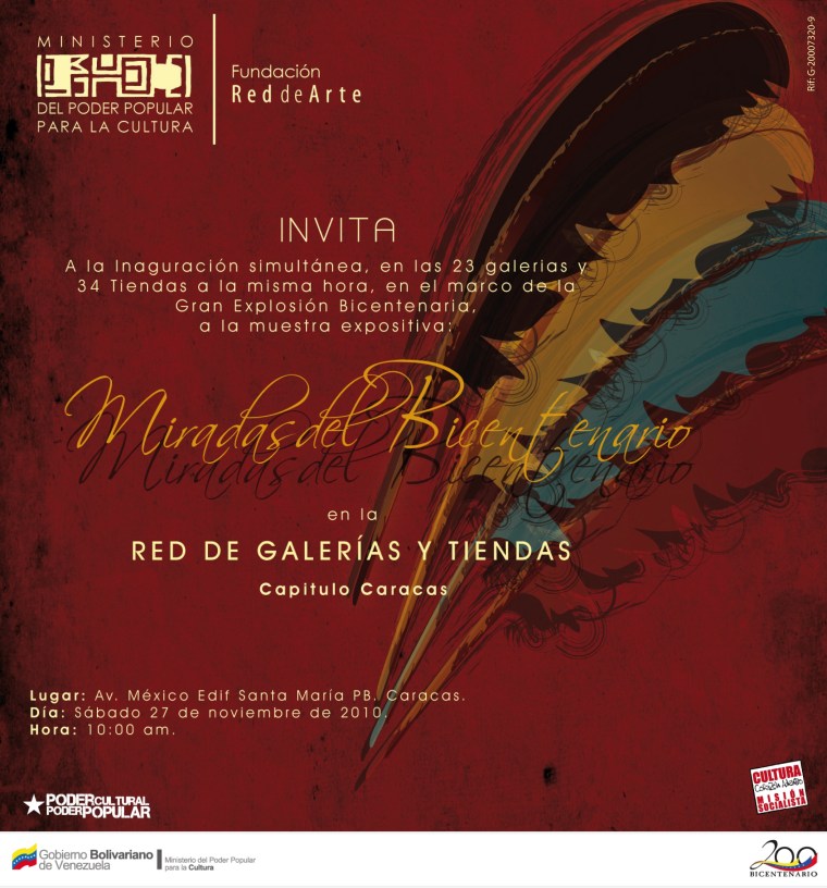 El Ministerio del Poder Popular para la Cultura a través de la Fundación Red de Arte invita a los medios de comunicación a la cobertura informativa de “Miradas del Bicentenario. La Historia contada desde el imaginario local”, este sábado 27 de noviembre en la Galería Caracas de la Fundación Red de Arte, ubicada en la Avenida México, con Calle Tito Salas, edificio Santa María, a las 10:00 am.