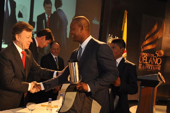 El Espectador reunió, en esta ocasión, a la gran mayoría de deportistas que alguna vez recibieron la estatuilla de la más alta distinción del talento deportivo colombiano, y por eso ni el presidente de la República, Juan Manuel Santos Calderón, quiso perderse la ceremonia en la que el beisbolista barranquillero fue revelado como ganador en medio de una obra de arte en arena para luego subir por tercera ocasión a lo más alto del podio nacional, gracias a una carrera profesional brillante, rematada este año con el campeonato en las Grandes Ligas del beisbol con los Gigantes de San Francisco.
