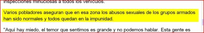 “Varios pobladores aseguran que en esa zona los abusos sexuales de los grupos armados han sido normales y todos quedan en la impunidad”.