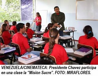 VENEZUELA/CINEMATECA: Presidente Chavez participa en una clase la “Misiòn Sucre”. FOTO: MIRAFLORES.