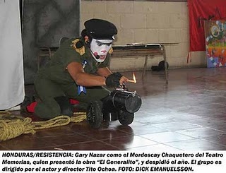 HONDURAS/RESISTENCIA: Gary Nazar como el Mordescay Chaquetero del Teatro Memorias, quien presentó la obra “El Generalito”, y despidió el año. El grupo es dirigido por el actor y director Tito Ochoa. FOTO: DICK EMANUELSSON.