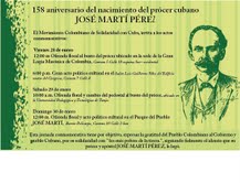 Con la colocación de una ofrenda floral al busto del prócer cubano, ubicado en la sede de la gran logia masónica de Colombia, carrera 5 calle 18 esquina sur- occidental se dará comienzo en Bogotá el viernes 28 de enero a las 12:00 del día a la Jornada conmemorativa del natalicio número 158 de José Martí Pérez. En la jornada participarán representantes del cuerpo diplomático cubano y voceros de las organizaciones y comités de solidaridad con la revolución socialista de Cuba.