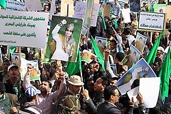 La convocatoria de una «marcha verde», denominada así por el color de la bandera nacional, fue realizada por el líder libio, luego que el sábado aviones y buques de la coalición imperialista bombardearan las posiciones militares oficiales, para evitar su ingreso armado en Benghazi.
