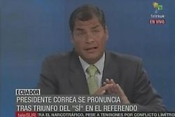 El presidente de Ecuador, Rafael Correa, celebró este sábado el triunfo de la opción del «Sí» en el referendo y consulta popular celebrado en ese país. El mandatario recordó que esta es la octava victoria consecutiva de la Revolución Ciudadana y agradeció a los ciudadanos que apoyaron la iniciativa.