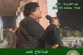 La televisión estatal de Libia transmitió este miércoles imágenes del líder Muamar Gaddafi en un salón del hotel Rixos, acompañado por representantes de tribus del país que le ofrecieron los pésames por el asesinato de su hijo y tres de sus nietos durante un bombardeo de la Organización del Tratado del Atlántico Norte (Otan) sobre Trípoli.