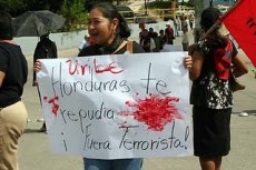 El ex presidente Álvaro Uribe pronto hablará en Puerto Rico sobre los resultados de su «Seguridad Democrática» que hizo desaparecer 38 000 colombianos durante tres años, o la mafiación de la sociedadcolombiana. En la foto, estudiantes puertorriqueños sonvilmente atacadospor la policía bajo mando estadounidense solo por el hecho de defender la Universidad Pública, UPR. Cuando Uribe llegó a Honduras fue recibido por los golpistas pero repudiado por el pueblo que en grandes manifestaciones clamaba: