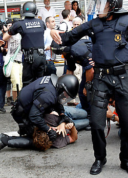 Cuarenta y tres personas resultaron hoy heridas leves en Barcelona (nordeste) durante el desalojo policial de los jóvenes Indignados que permanecían concentrados en la céntrica Plaza de Cataluña de esta ciudad. Las personas atendidas, entre los que se encuentra un miembro de la Policía autonómica catalana (Mossos d’Esquadra), presentan en su mayoría contusiones aunque también algunas heridas abiertas, informaron los servicios de emergencias.