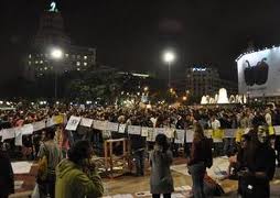 Más de 12.000 personas, según datos de los medios de comunicación, llenaban hasta los topes plaza Catalunya en la concentración de las 19h y durante la cacerolada de las 21h de este viernes 27. Antes, a las 17h, varios miles participaron en la marcha contra los recortes a la sanidad pública, convocada por la plataforma de trabajadores de la sanidad “Indignados e indignadas”, que partió del monumento a Colón y culminó su entrada triunfal en la plaza Catalunya. Sin duda alguna, la asamblea celebrada al final de la jornada ha sido la más masiva desde que empezó el movimiento. Los eslóganes más coreados en la misma transmiten un mensaje político muy claro: “De plaza Catalunya no nos moverán!”, “Felip Puig dimisión”, “Aquí empieza la revolución!”. Las concentraciones en el resto de acampadas del Estado español han sido también más numerosas que las de los últimos días. La solidaridad antirepresiva da un nuevo impulso al movimiento, después de una semana en la que el cansancio se ha ido acumulando.