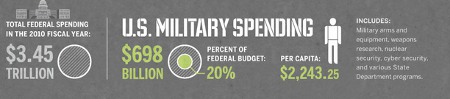 El 42,8% del gasto militar del mundo se produce en EEUU. Hasta cierto punto, es normal que los norteamericanos no tengan una idea clara de la dimensiones de este gasto. No tanto como para creer que, si hay que reducir el déficit, se debería empezar con la ayuda a los países subdesarrollados en el resto del mundo, que es en realidad infinitamente menor de lo que ellos creen. Todos losdatos en esta infografía de Good.