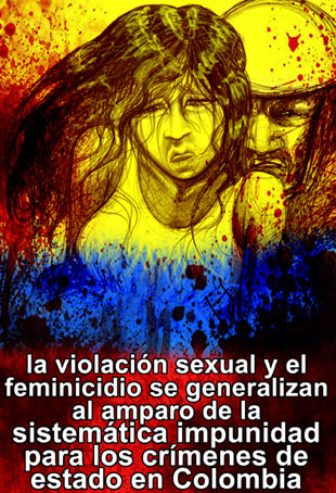 “El ejército nos bajó del autobús. Al muchacho que estaba conmigo lo mataron. A mi me violaron entre nueve soldados. (…) Cuando llegué a Dabeiba, estaban los paramilitares. El comandante paramilitar me violó (…) A una le toca quedarse callada… Cuando entra el ejército me vuelven los pensamientos que me va pasar lo mismo.” (1). El feminicidio y la violación sexual aumentan dramáticamente al amparo de la impunidad para los crímenes de Estado. La impunidad de la que goza la Fuerza pública le da carta blanca para violar, y el empleo de la violación como mecanismo del terror conforma a una Fuerza Pública habituada a prácticas genocidas.