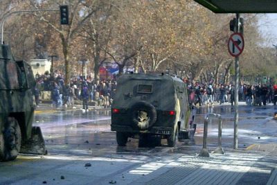 Con fuertes enfrentamientos terminó este jueves la marcha que lideraban miles de estudiantes chilenos en demanda de una mejor educación pública y no privatizada. La corresponsal de teleSUR, Beatriz Michell, informó que los Carabineros (Policía militarizada) arremetieron con bombas lacrimógenas y lanza aguas a los estudiantes que se acercaban al palacio de La Moneda. «Ocurrieron incidentes poco antes de la llegada al escenario (plaza Los Héroes) donde se realizaría el acto central, este es