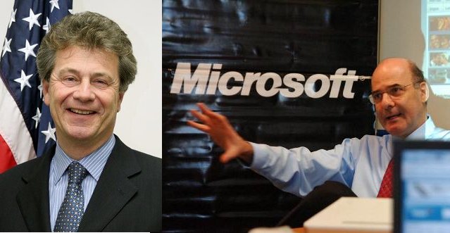 | El entonces embajador estadounidense Clifford Sobel (izq.) y quien sigue siendo el presidente de Microsoft Brasil, Michel Levy. |