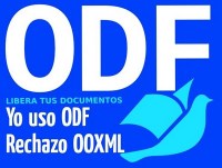 | En 2007 y 2008 surgieron banners y botones como éste, rechazando el formato OOXML de Microsoft y dando apoyo a estándares abiertos, |