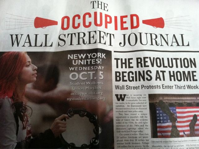 La portada de WallStreetJournal «The Occupied» manifestantes crean su propio medio ante el silencio de medios locales./Telesur