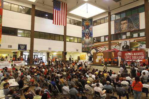 Se trata de la segunda presentación de López Obrador en Estados Unidos en menos de cuatro meses, luego de que en junio pasado encabezó un acto político en Los Ángeles para invitar a los migrantes mexicanos a sumarse a su movimiento./