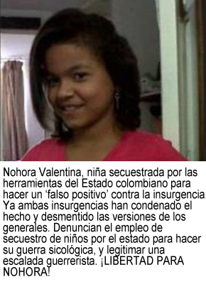 Las FARC- EP desmienten al Ejército y a los medios sobre el secuestro de la niña Nohora Valentina Muñoz