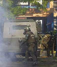 La policía chilena, fuertemente criticada por sus métodos represivos, arremetió también este lunes contra dirigentes sociales y estudiantiles que intentaban llegar al Palacio de Gobierno de La Moneda a entregar los resultados del plebiscito por la educación.