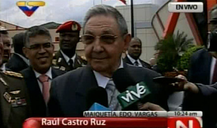 El presidente cubano Raúl Castro arribó a Venezuela para estar presente en el nacimiento de la Celac. Fue recibido por el vicepresidente Elías Jaua.