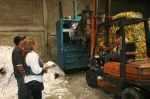 Una vez verificada la boletería, este material fue llevado hasta el galpón ubicado en el sector Filas de Mariche, en donde fueron impregnados con agua a fin de inutilizarlos, para luego introducirlos a las máquinas compactadoras. Con este proceso se aprovecha el material para transformarlo en papel de reciclaje.