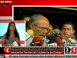 Ante la directa sencillez de la pregunta, García apenas pudo decir, textualmente: “…tendrían que preguntarle al ministro de Relaciones Interiores y Justicia”, para luego intentar desviar el asunto, argumentando sobre la supuesta responsabilidad que tenía el ministro sobre la presencia de estos funcionarios de PoliMiranda u otros efectivos de seguridad en las actividades de su candidato.