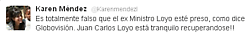 La periodista de Venezolana de Televisión Karen Méndez, con seguridad fue a la fuente de la noticia, en este caso el propio Juan Carlos Loyo, y se encargó de dar al traste con la bola echada a rodar.