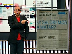 “He dicho sólo palabras que he leído en esos diarios…”, advirtió el conductor de VTV. “Ayer decía que esto será una campaña entre el amor y el odio… Yo les pregunto a los opositores, respóndanse ustedes mismos. ¿Han escuchado a algún dirigente de las filas bolivarianas que asarán a alguien?.