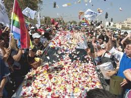 Al acercarse al centro de Santiago, la carroza fue enlenteciendo el paso, mientras recibía sonoros aplausos de miles de personas que se agolparon en las calles para despedir al joven que fue torturado cruelmente durante seis horas por un grupo de neonazis que lo secuestró el pasado 3 de marzo.