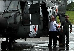 En la aeronave viaja la defensora de los Derechos Humanos, Piedad Córdoba, acompañada de la directora de la Casa de la Mujer de Colombia, Amparo Sánchez, delegados de la CICR y miembros de la tripulación brasileña.