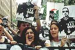 El homenaje al exdictador está concebido para las 11:00 hora local de este domingo (15:00 GMT) y en su rechazo ha sido anunciada una transversal movilización popular una hora antes.Sin embargo, desde anoche empezaron a llegar manifestantes a las inmediaciones del Caupolicán, quienes portaban velas, lienzos y fotos con las imágenes de sus familiares ejecutados o desaparecidos en los 17 años de terror del pinochetismo. El vocero de la Asamblea Nacional de Derechos Humanos, Humberto Trujillo, dijo que el sentido de esa primera protesta, que se desarrolló en forma pacífica, era dar a conocer el mundo que «no queremos que se reivindique a un asesino como Pinochet».