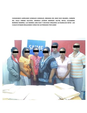 Rivas explicó que luego de las denuncias realizadas, los funcionarios SAIME acudieron al lugar de los hechos donde siete ciudadanos identificados como Auereliano González, Brizaida Sojo, Carmen Urbina, Amarilis Andrade, Nevill Moreno, venezolanos; así como Luz Marina Lara, venezolana (naturalizada) y Eduvigis Altagracia de nacionalidad dominicana, estaban realizando un supuesto censo de forma ilícita para ciudadanos de otras nacionalidades.