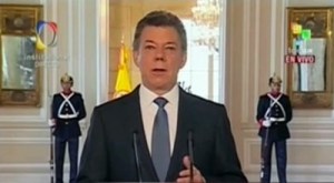 El presidente de Colombia, Juan Manuel Santos, confirmó este martes la firma de un acuerdo marco llamado Acuerdo General para la Terminación del Conflicto «que establece una hoja de ruta para llegar a un acuerdo final que termine de una vez por todas esta violencia entre hijos de una misma nación». En el documento no se prevé despeje alguno de territorio ni cese de operaciones militares.En cadena nacional el mandatario afirmó que este acuerdo es diferente a otros a los que se ha llegado en el pasado. Destacó que el Gobierno no hará concesiones de ningún tipo en el terreno militar, pues no se ha establecido despeje de territorio y afirmó que las operaciones militares continuarán con la misma o mayor efectividad.