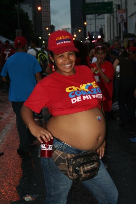 Aumentaba aun más esta sensación de felicidad y esperanza de un futuro más prometedor el ver que las madres embarazadas lucían con orgullo sus barrigas infladas, adornadas con pinturas dedicadas al Comandante y al proceso y satisfechas que con su participación le estan garantizando el derecho a una calidad de vida a ese ser que pronto esta por nacer.