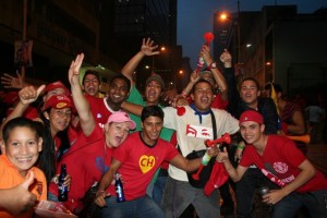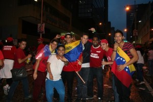 Por supuesto nuestro ramillete de jóvenes que lo hacen a su manera!!!, expresando en su lenguaje la victoria del Comandante: Chávez no se va!. En el metro no dejaban de cantar sus coros de victoria y le dejaban claro al candidato opositor que: NUNCA VOLVERAN!.