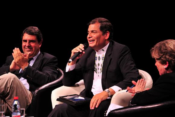 “Nuestros países tuvieron la oportunidad de ser la región más próspera del mundo, pero lo impidieron las enormes injusticias por la fase de élites explotadoras, con vida de lujo para diferenciarse del resto”, recalcó este viernes el presidente ecuatoriano Rafael Correa.Aquello lo dijo para referirse al porqué del título de su libro, “Ecuador: de la Banana Republic a la No República”, presentado esta noche en la Sala de Artes del centro de convenciones Estación Mapocho, en el marco de la XXXII Feria Internacional del Libro de Santiago.