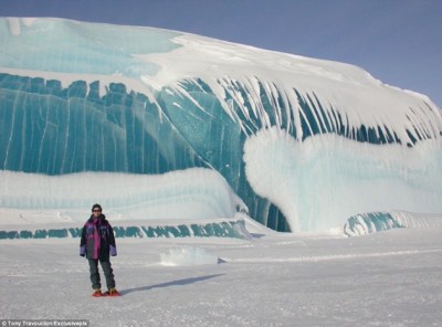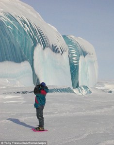 Personas que se encontraban en la Antártida pudieron observar una “ola congelada”, un monolito de hielo de más de 15 metros de alto.Aunque se asemeja en su forma a una ola, el fenómeno es en realidad causado por el hielo comprimido en la zona.