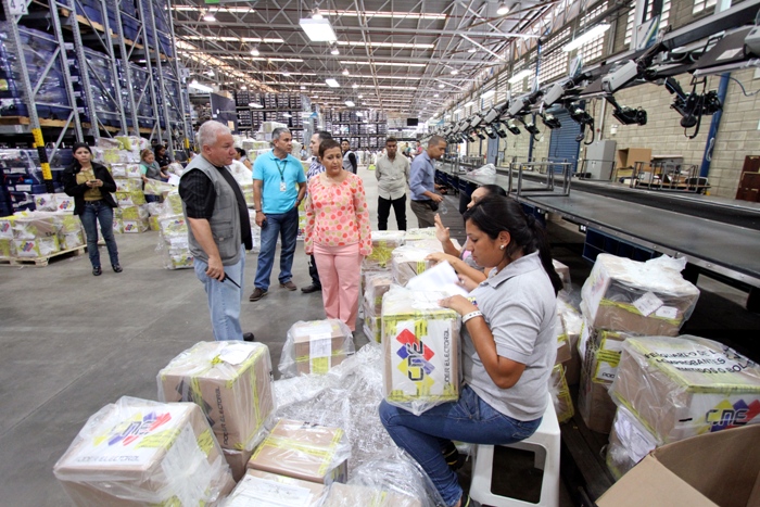 3 de junio de 2013.- Entrar al galpón del Consejo Nacional Electoral donde se realizan las auditorías es una experiencia impresionante. Es un espacio gigantesco. Cientos y cientos de maletas azules, cuidadosa mente apiladas unas sobre otras en un espacio de al menos unos cincuenta metros de ancho, unos 10 metros de alto y más de cien metros de profundidad, reposan tranquilamente esperando el siguiente proceso electoral. En ellas están celosamente guardadas y embaladas las máquinas de votación y materiales necesarios para los eventos electorales.