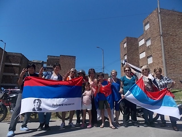 Este domingo 16 de noviembre 2014 , faltando muy poco para las elecciones los vecinos se reunieron , en la coordinadora del Frente amplio, en la cuidad de la Paz. salió una caravana con motos, autos con sus banderas , bocinas por los barrios de la cuidad.La multitud emocionaba , a los vecinos que desde su casa salían a saludar con sus banderas, niños . hombres, mujeres, ancianos hasta gente en sillas de ruedas .